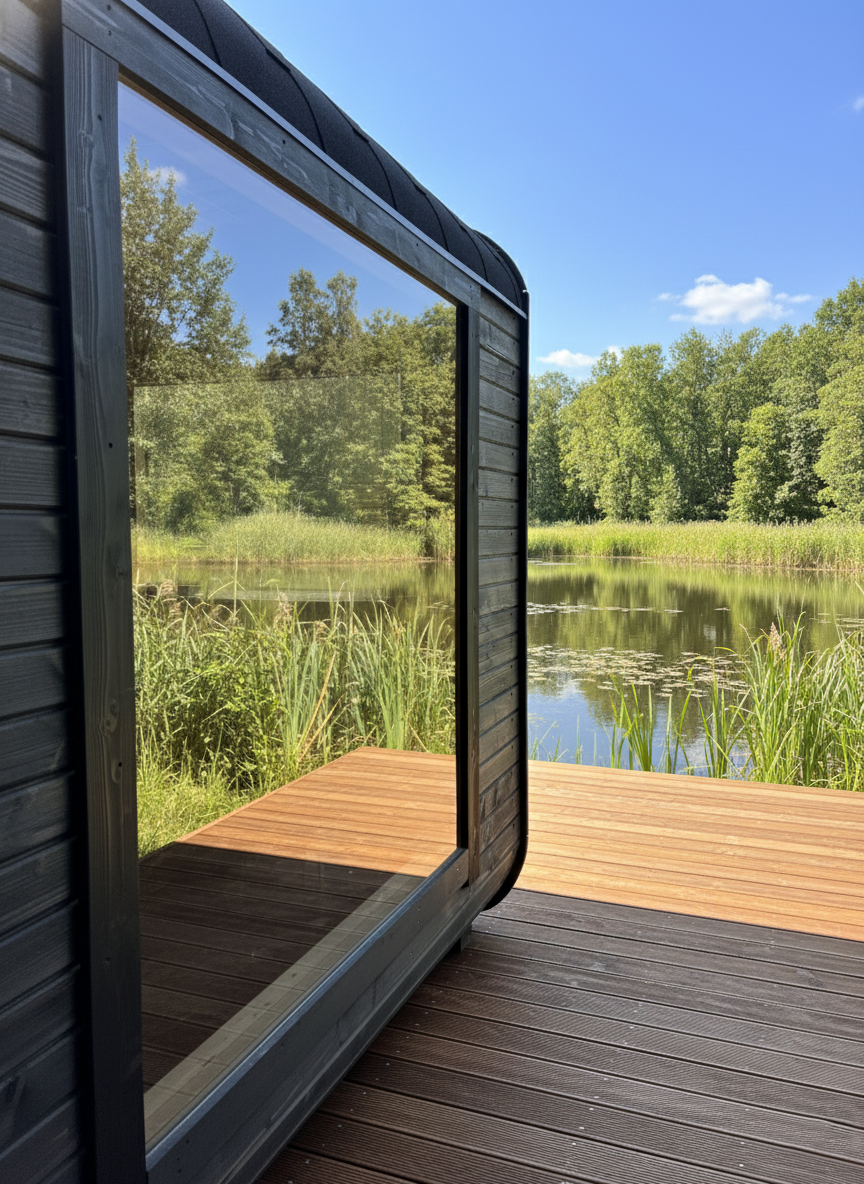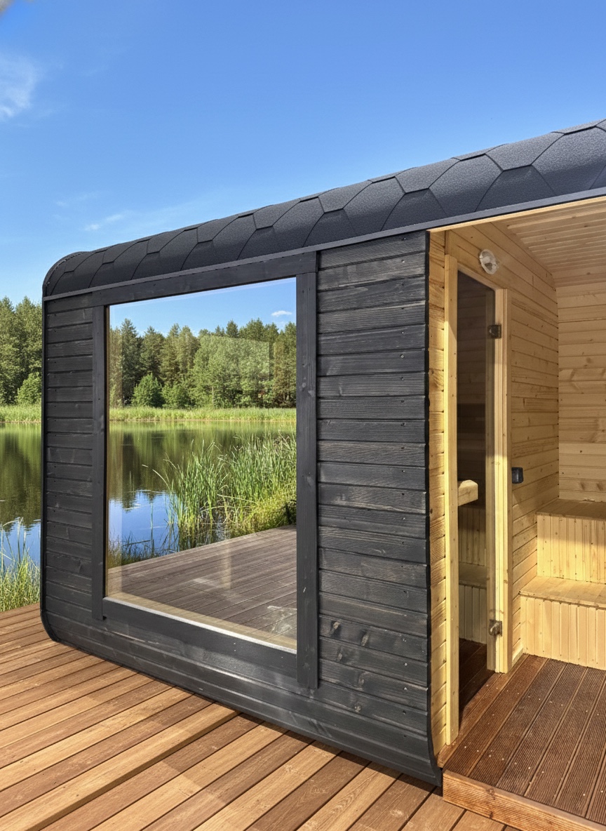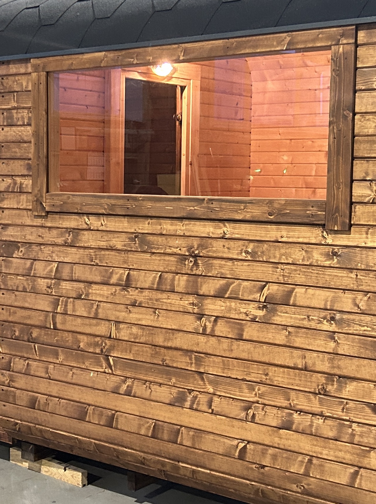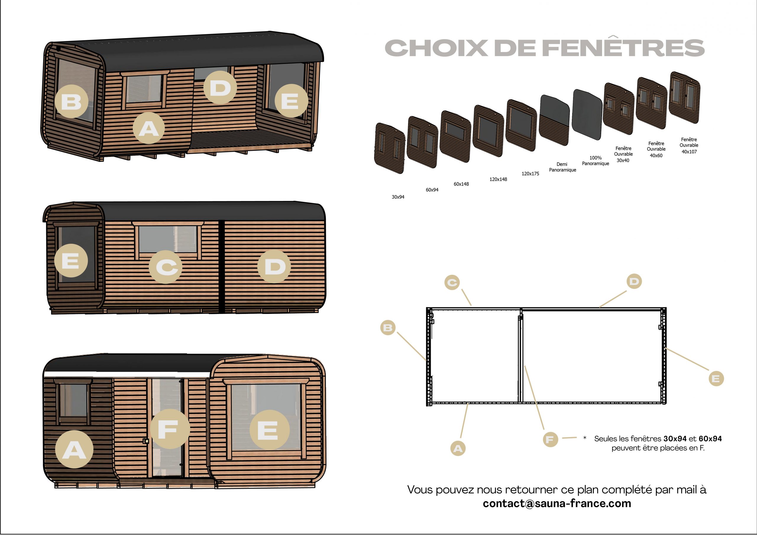 Attention cependant : plus vous opterez pour de grandes surfaces vitrées dans la partie sauna, plus le temps de montée en température sera long.