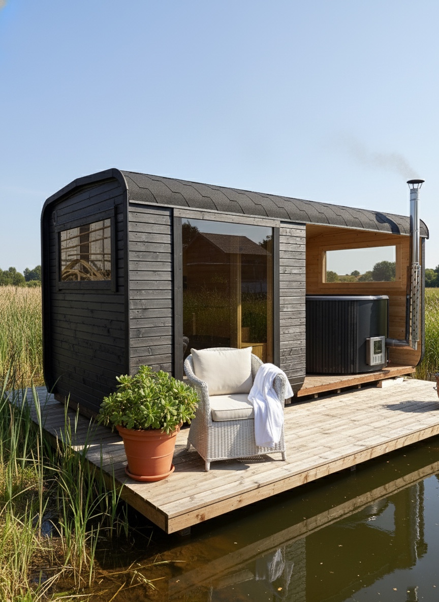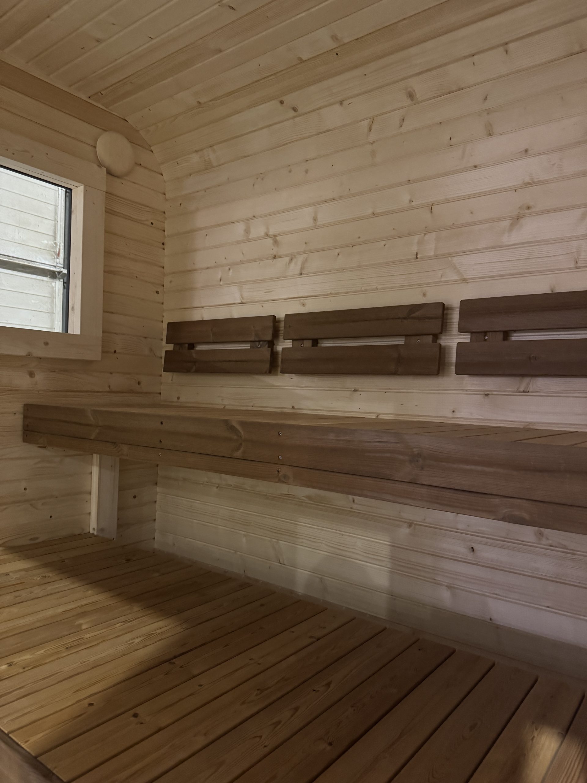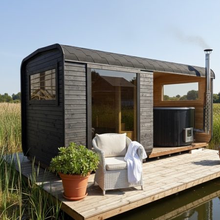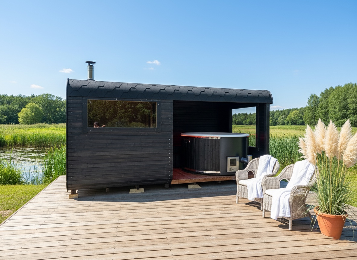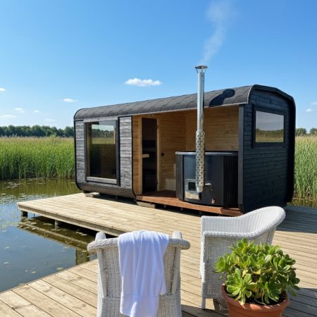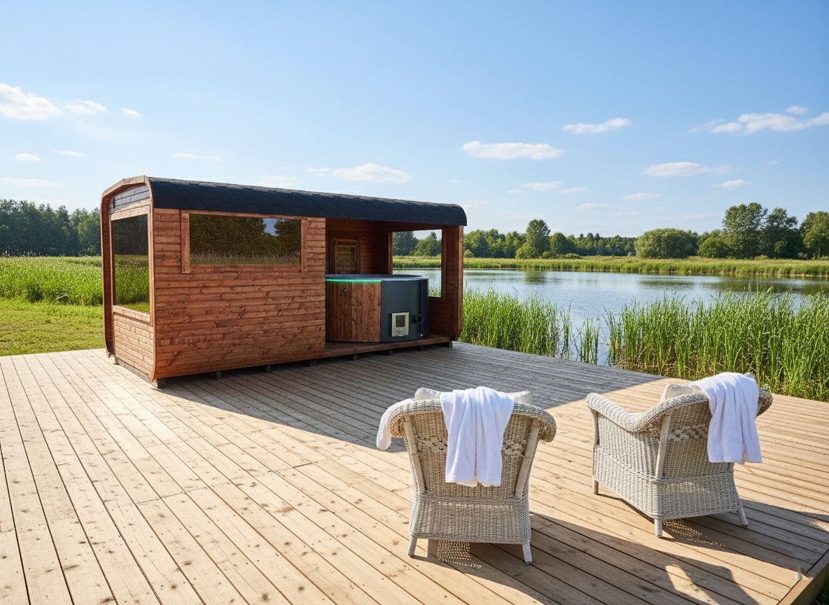 Attention cependant : plus vous opterez pour de grandes surfaces vitrées dans la partie sauna, plus le temps de montée en température sera long.