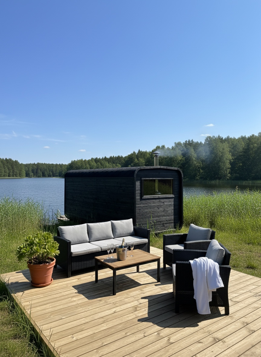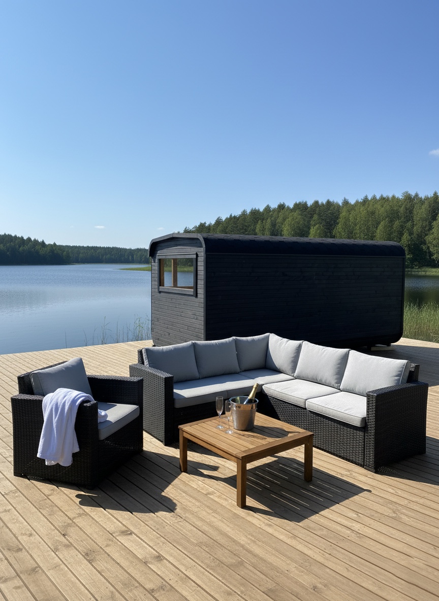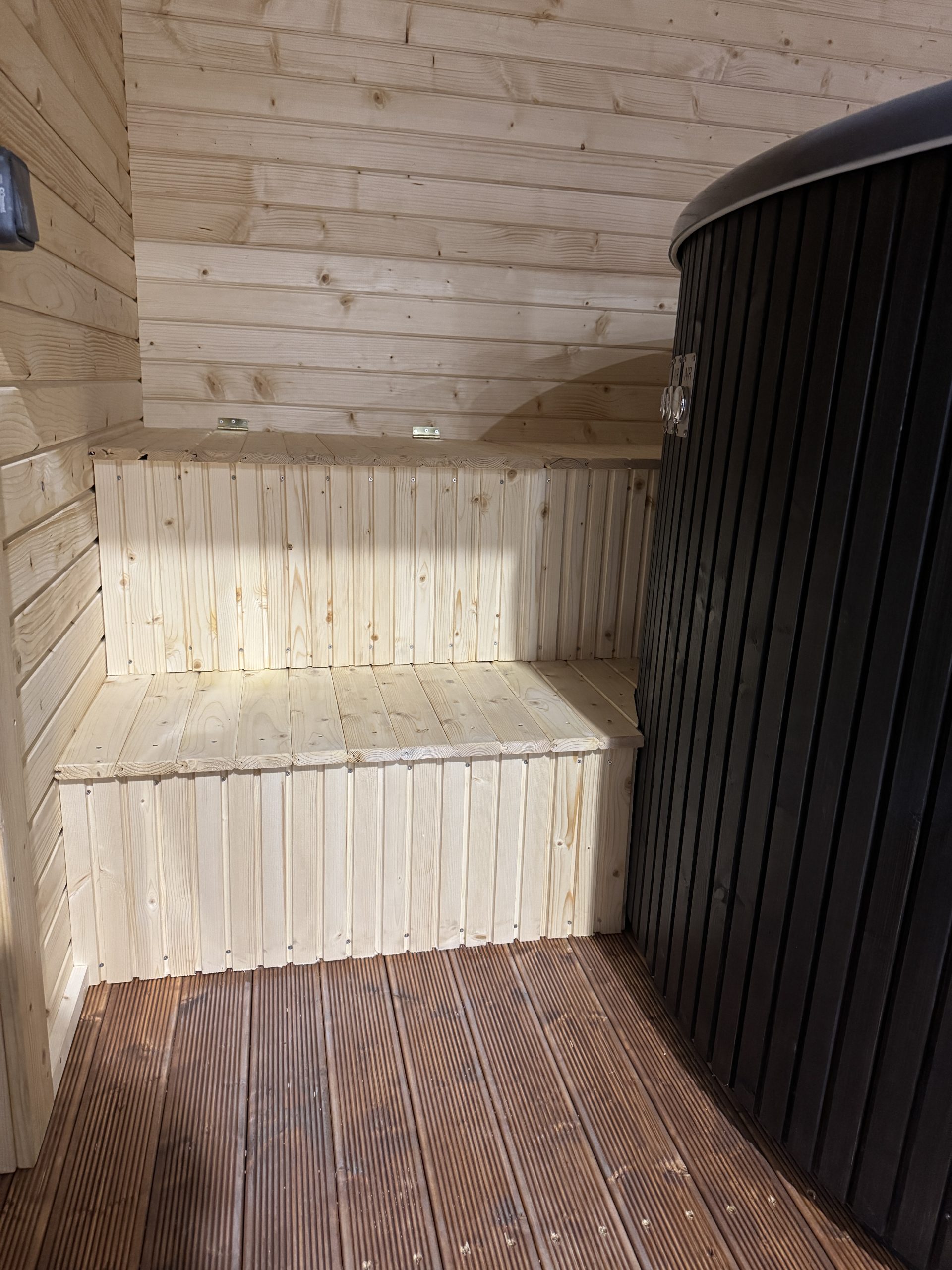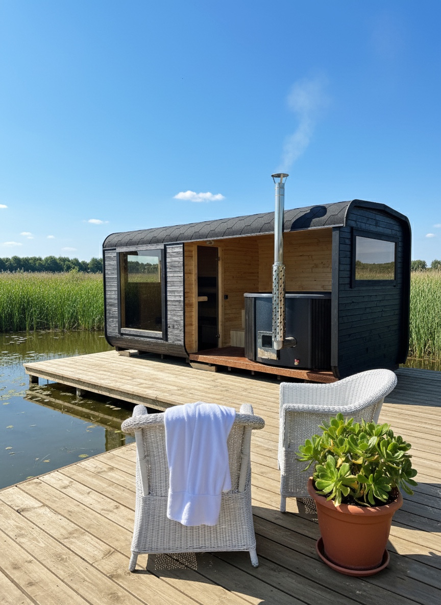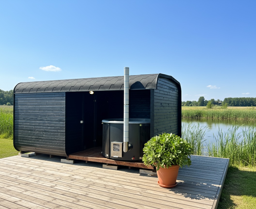 Attention cependant : plus vous opterez pour de grandes surfaces vitrées dans la partie sauna, plus le temps de montée en température sera long.