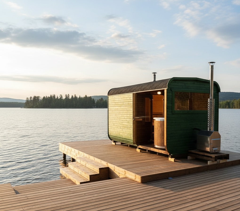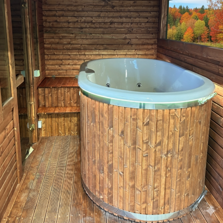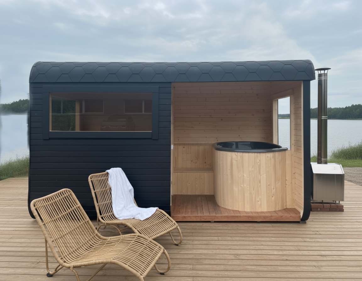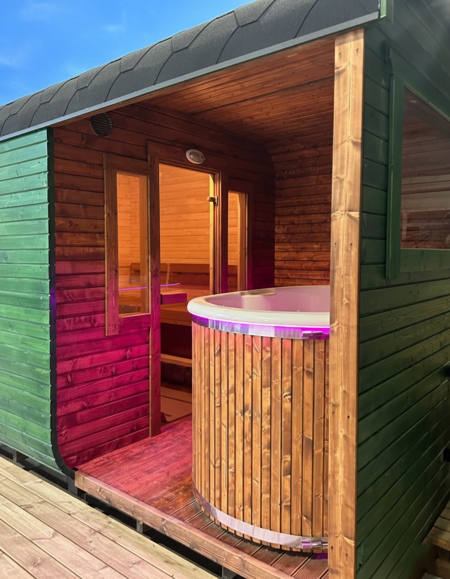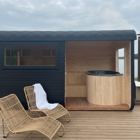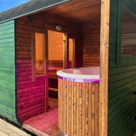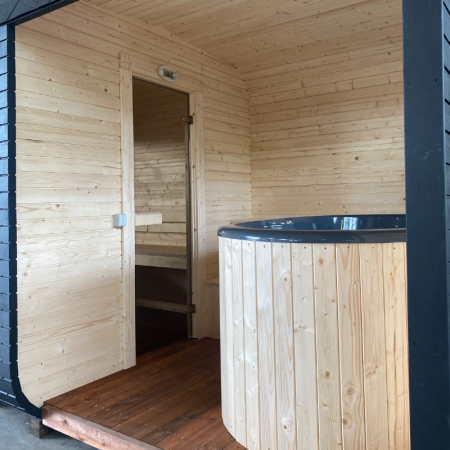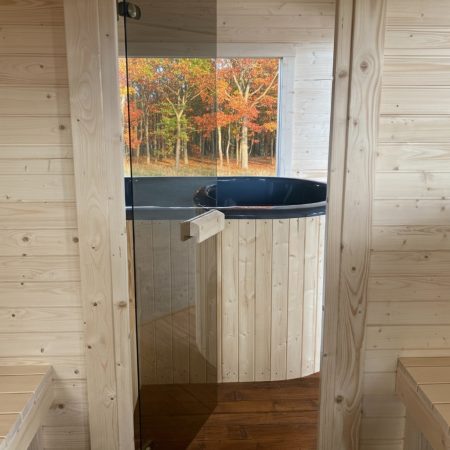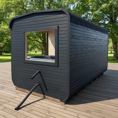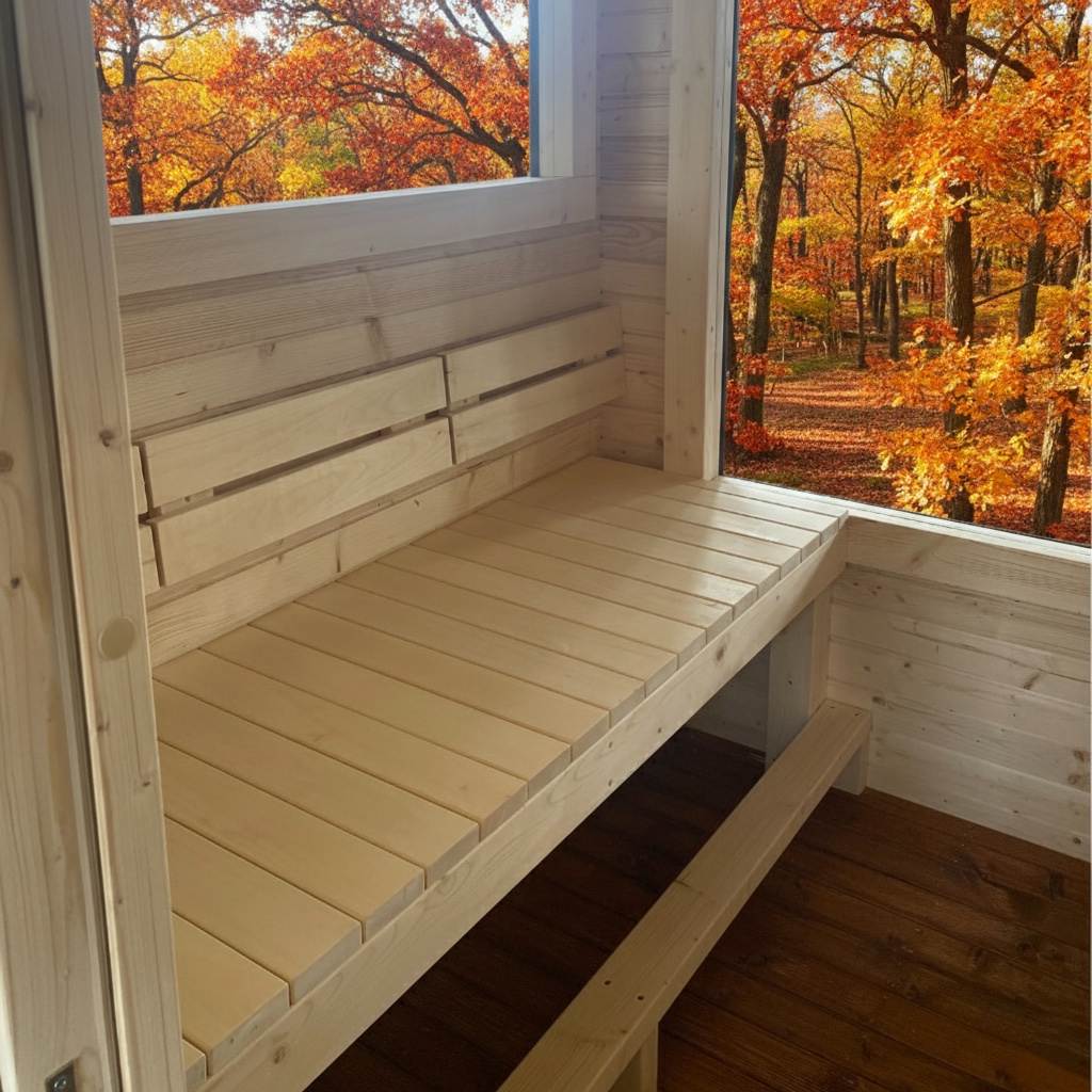 Attention cependant : plus vous opterez pour de grandes surfaces vitrées dans la partie sauna, plus le temps de montée en température sera long.