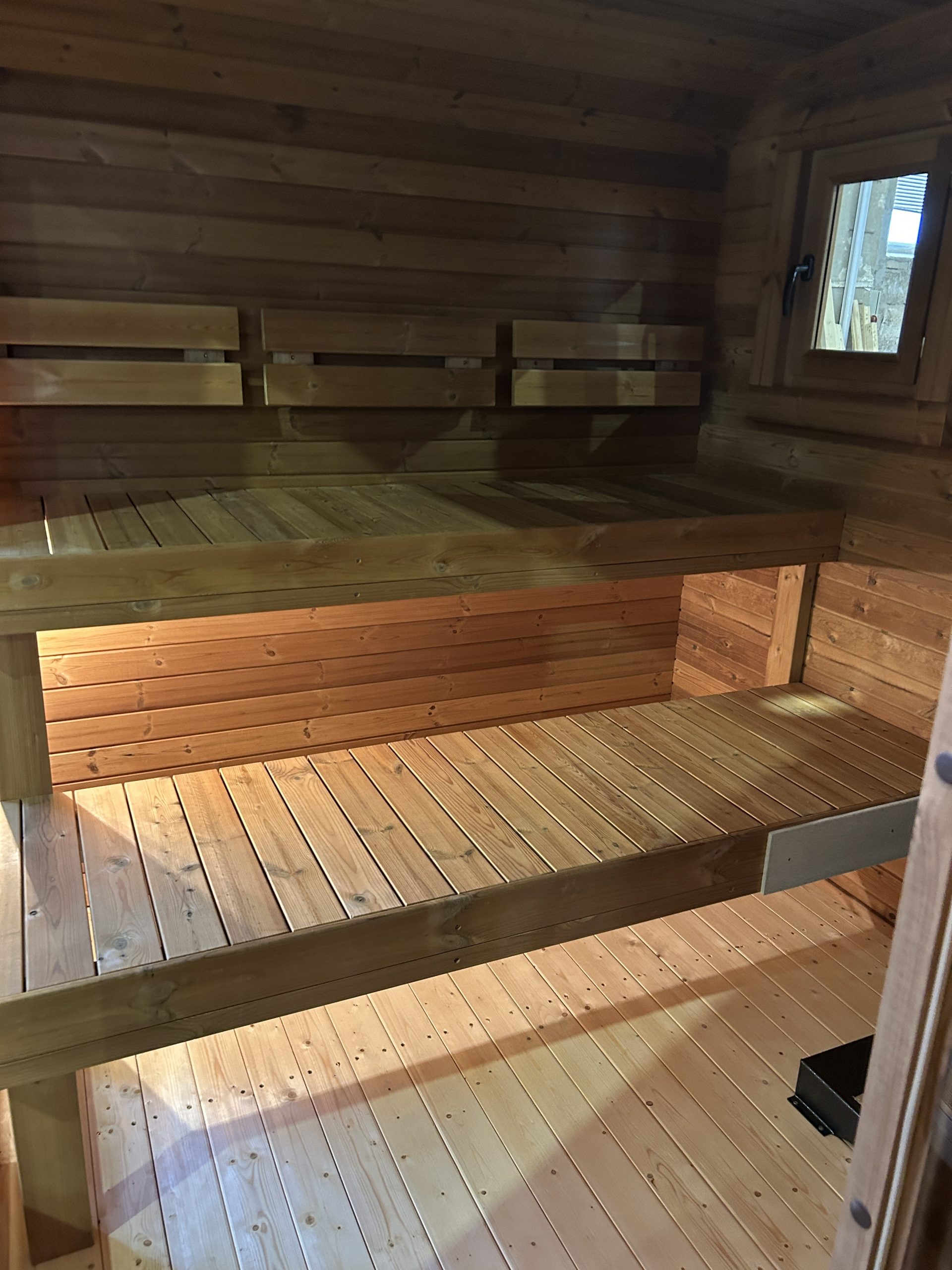 Sauna spacieux, idéal pour partager des moments de relaxation à plusieurs.