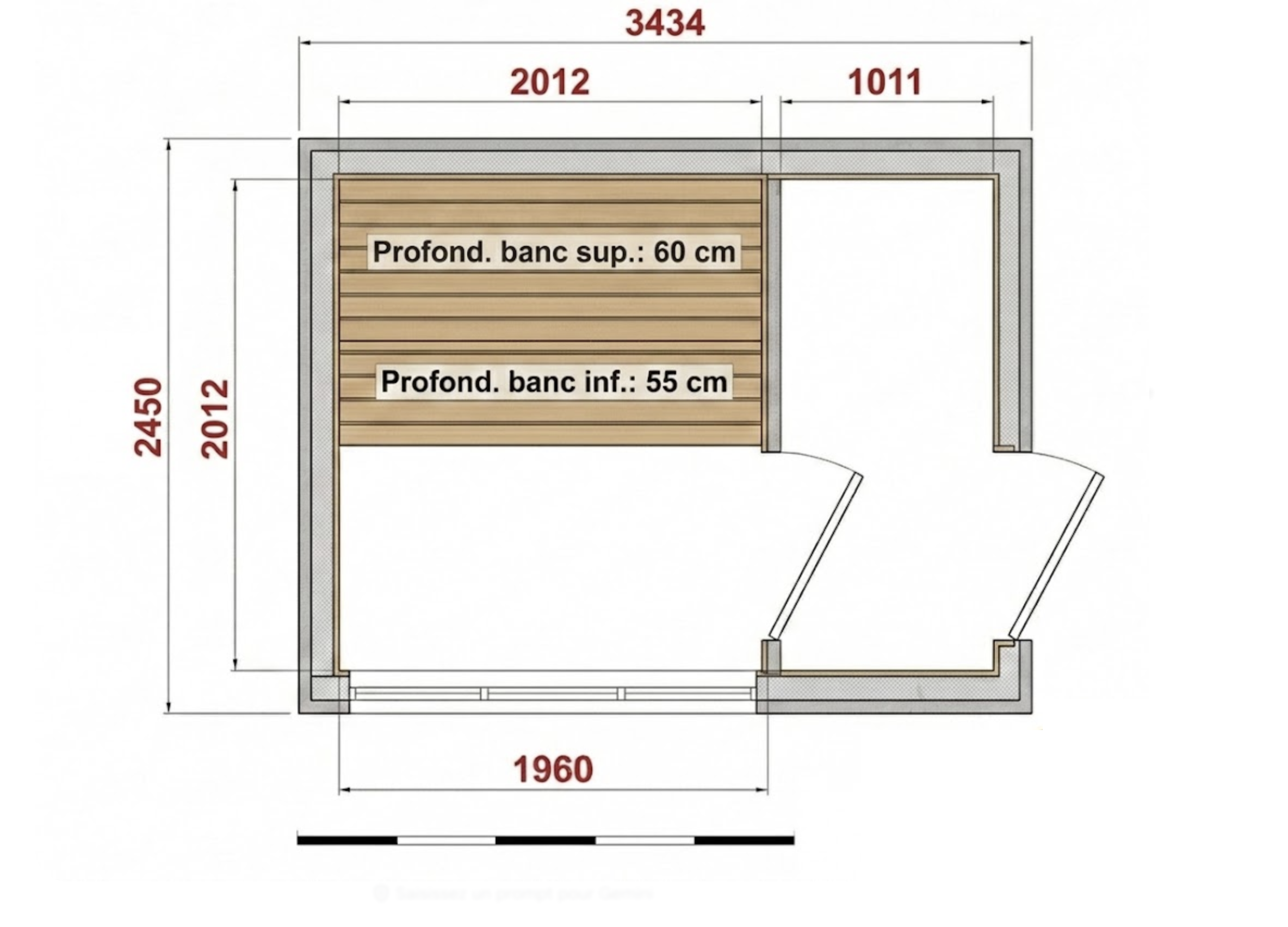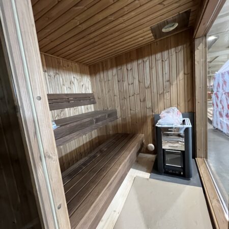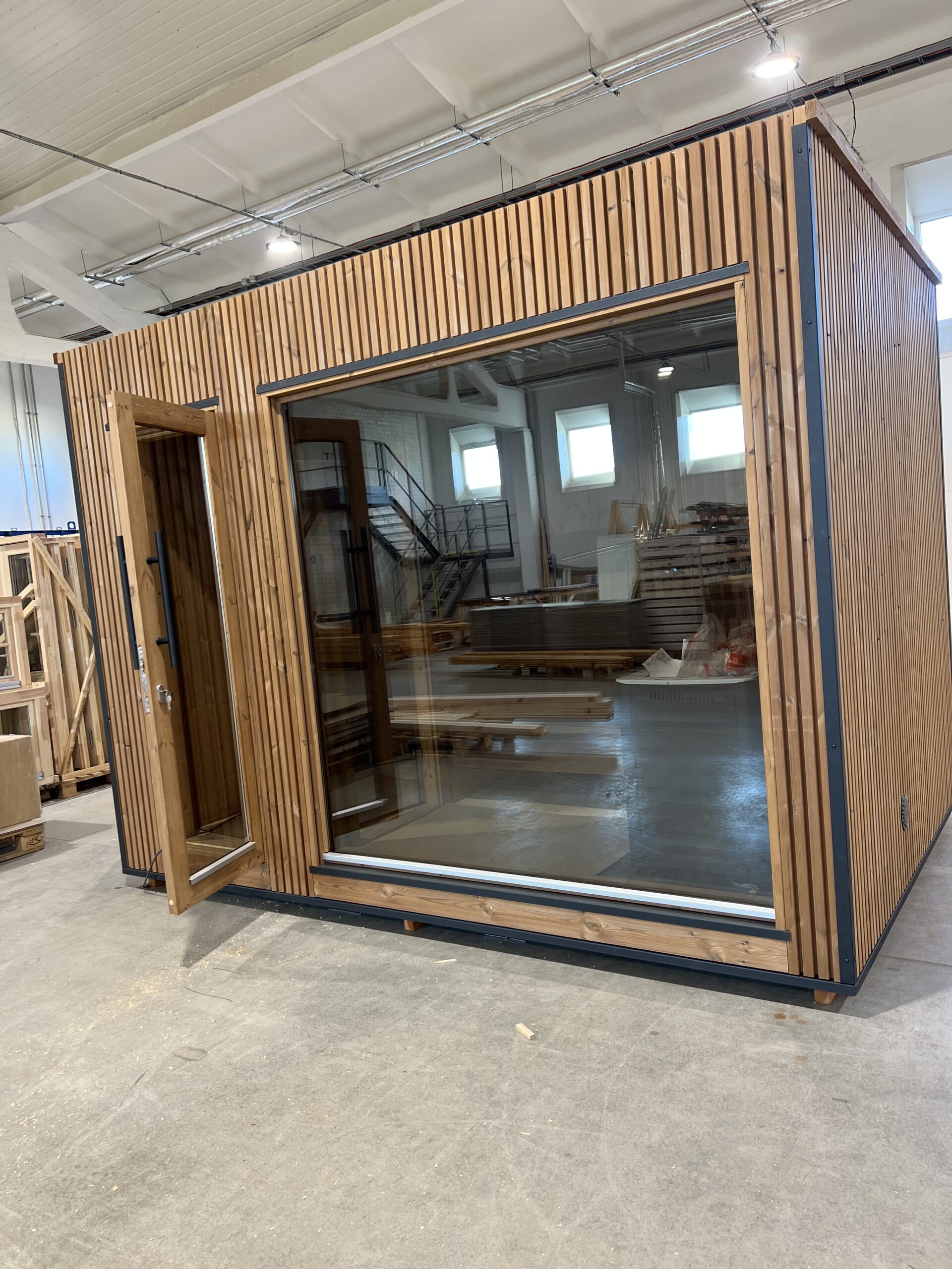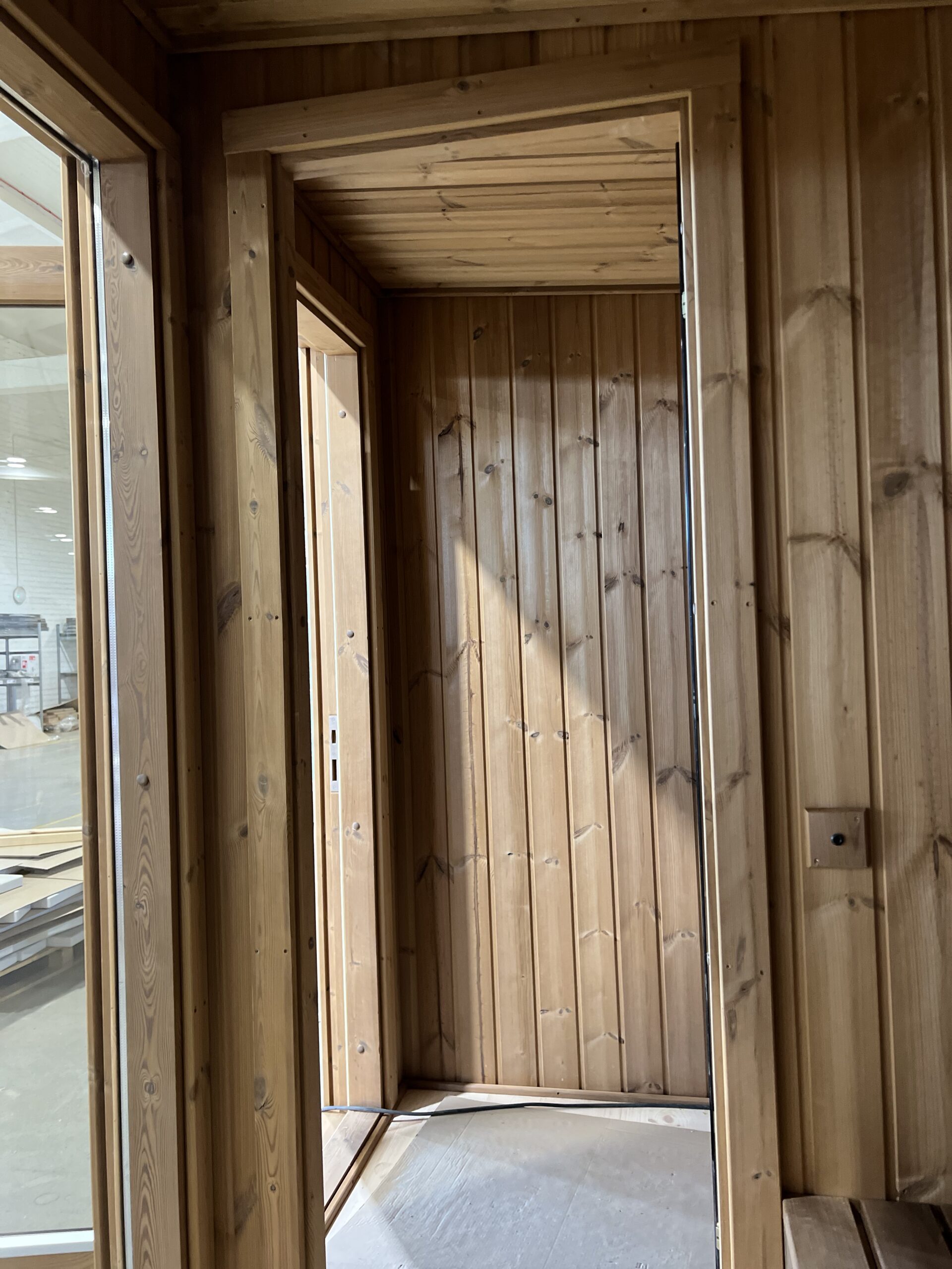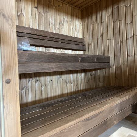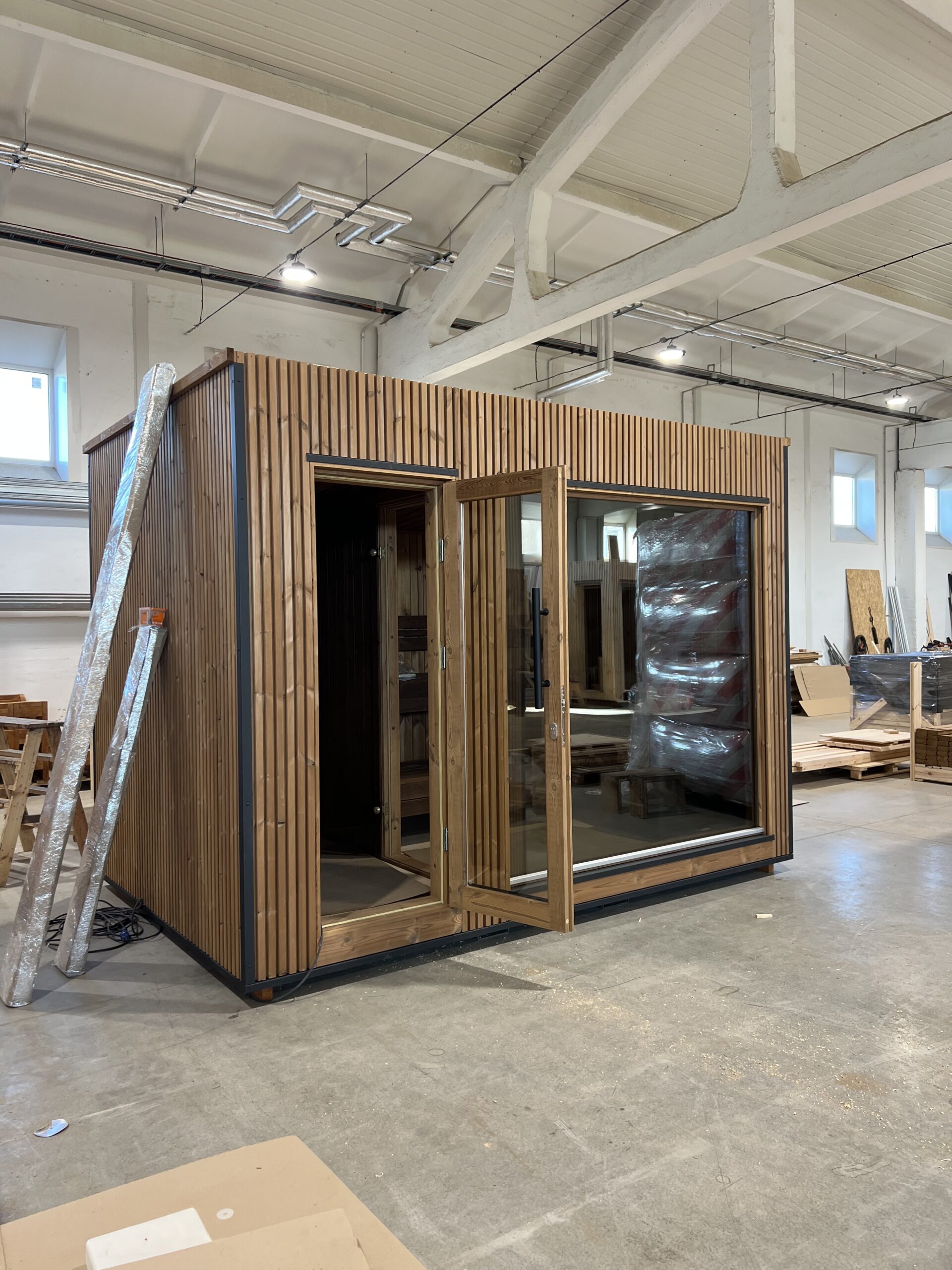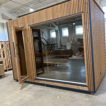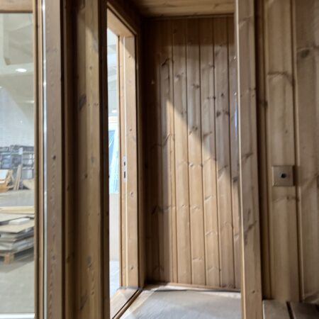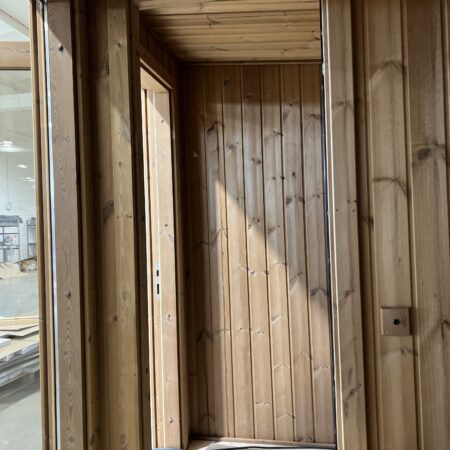 Le Sauna Kubo 2,4 x 3,4 m est l'alliance parfaite de la praticité et du luxe scandinave. Ce modèle se distingue par l'ajout d'un vestiaire intégré, une zone tampon essentielle pour se déshabiller à l'abri du froid et conserver la chaleur de la cabine principale.
