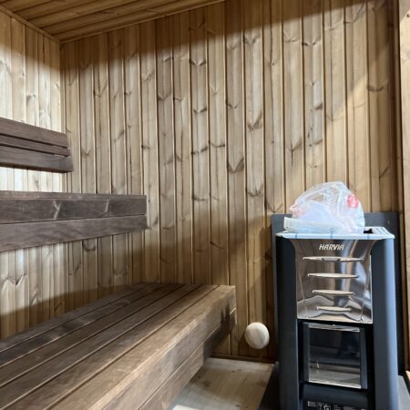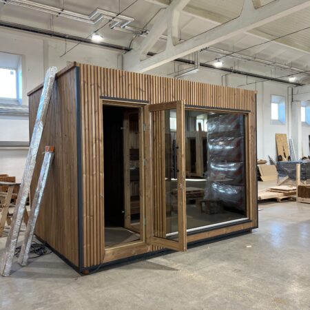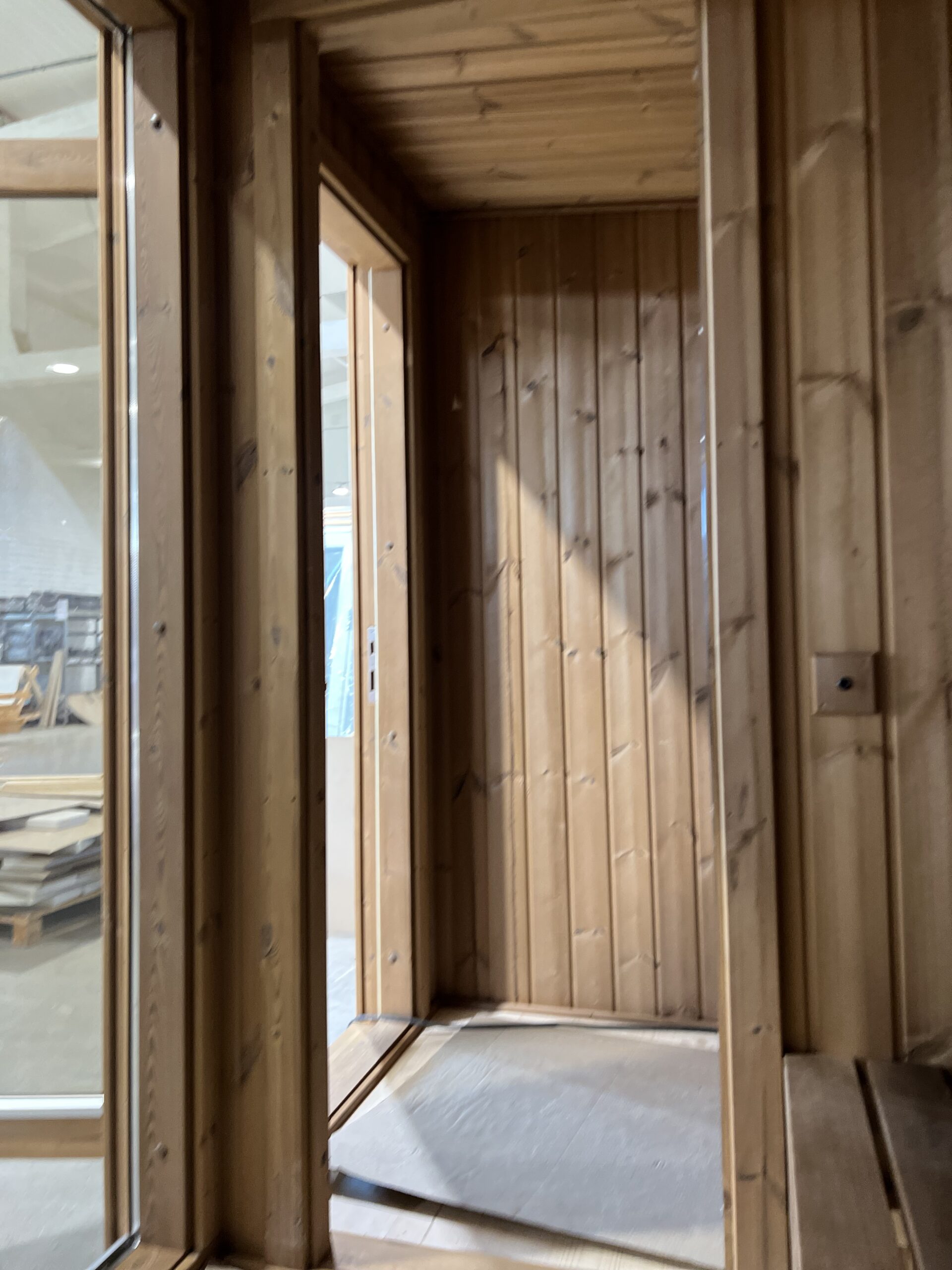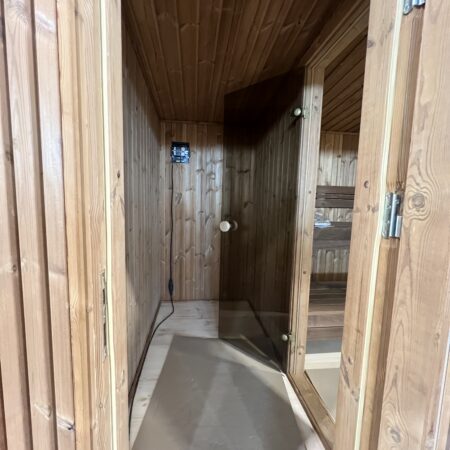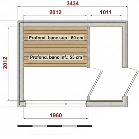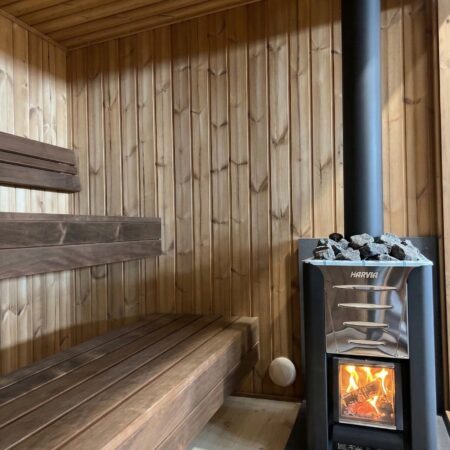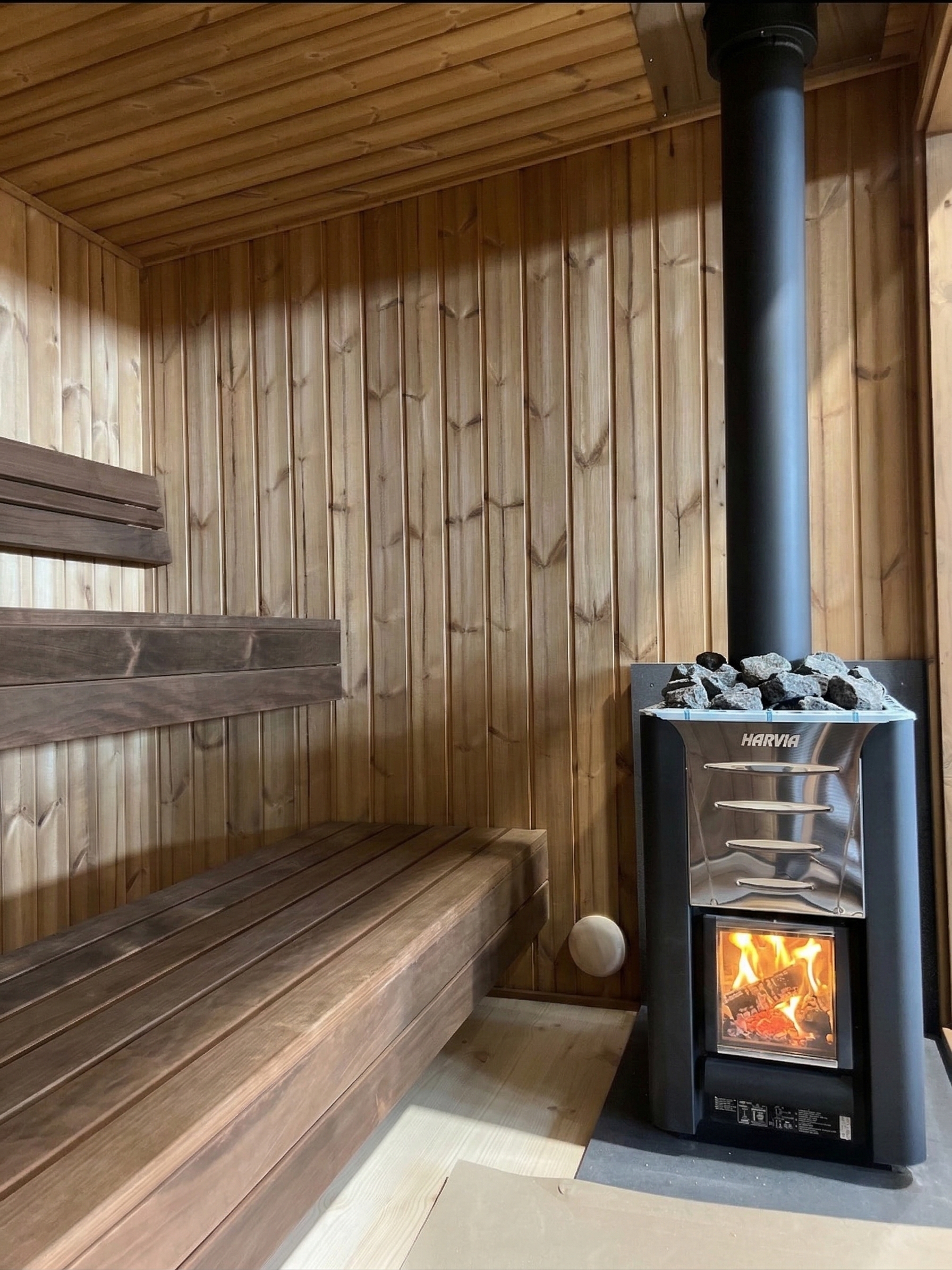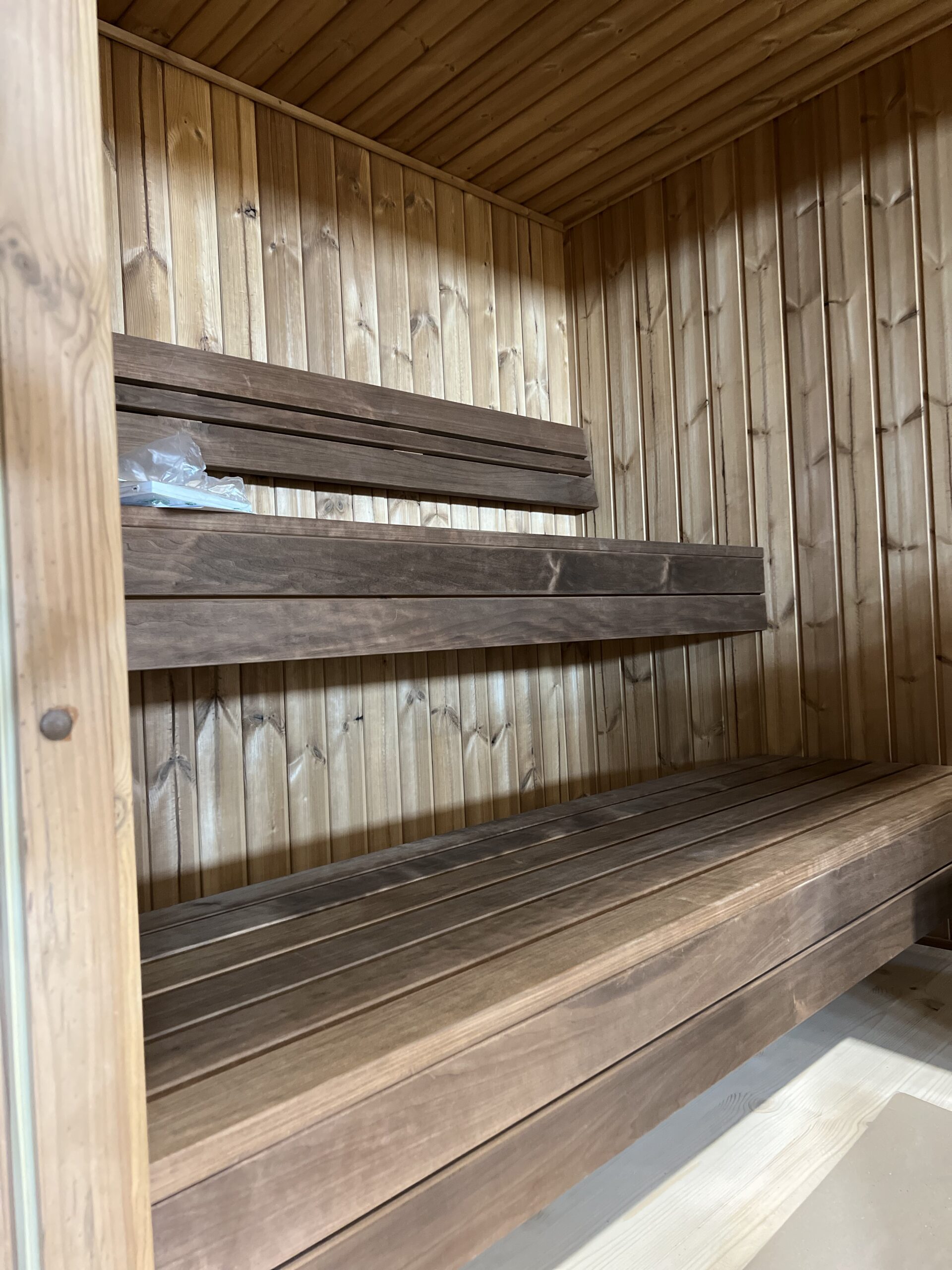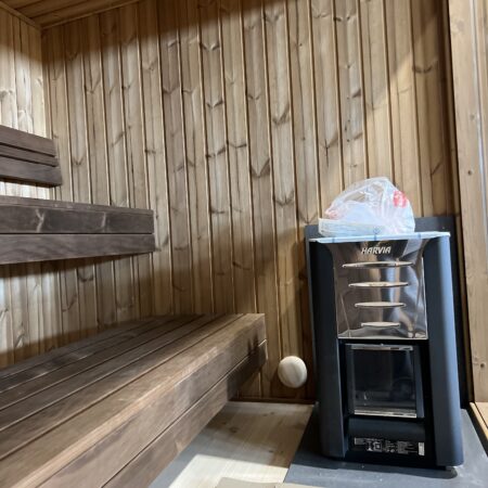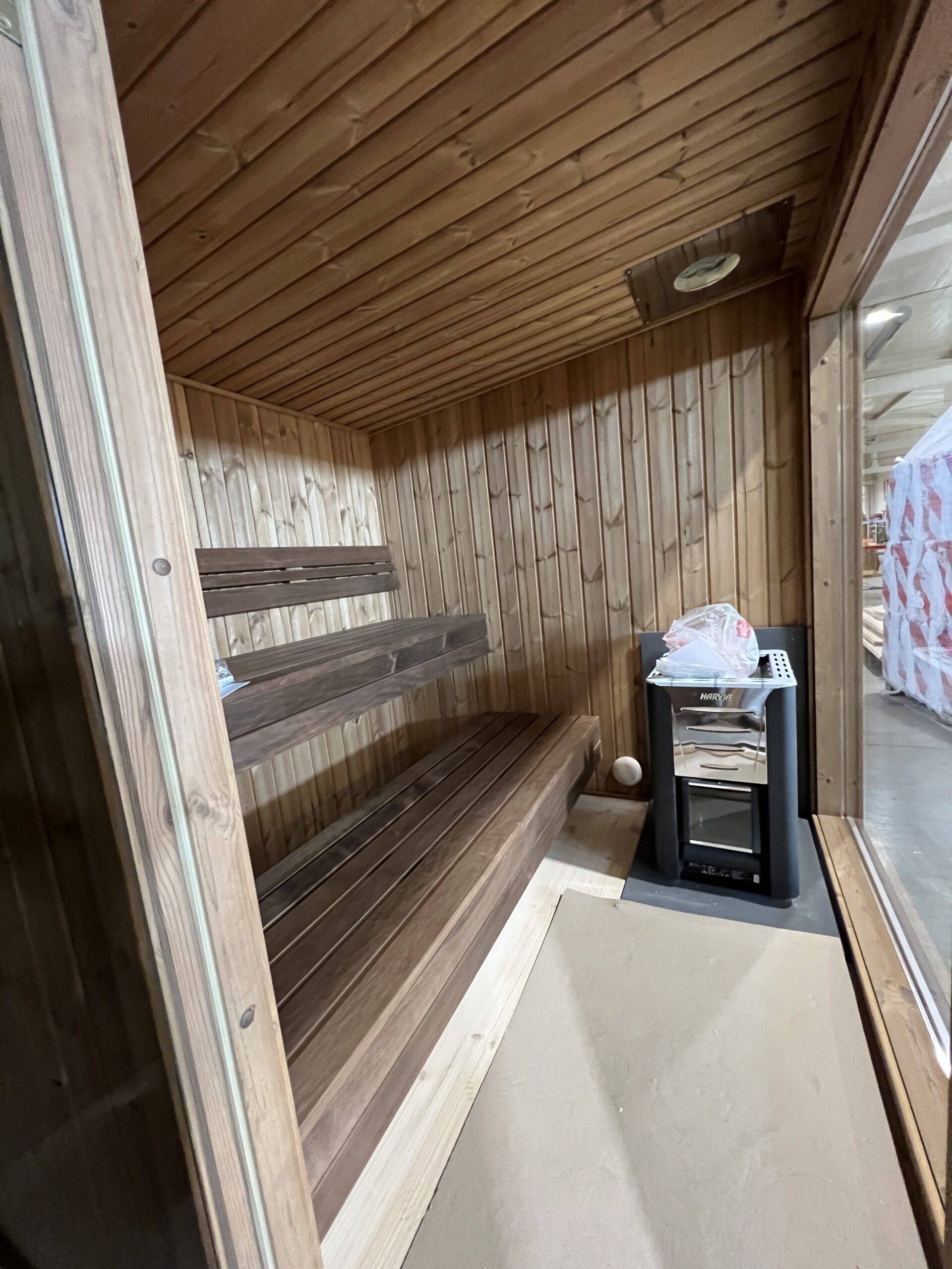 Le Sauna Kubo 2,4 x 3,4 m est l'alliance parfaite de la praticité et du luxe scandinave. Ce modèle se distingue par l'ajout d'un vestiaire intégré, une zone tampon essentielle pour se déshabiller à l'abri du froid et conserver la chaleur de la cabine principale.