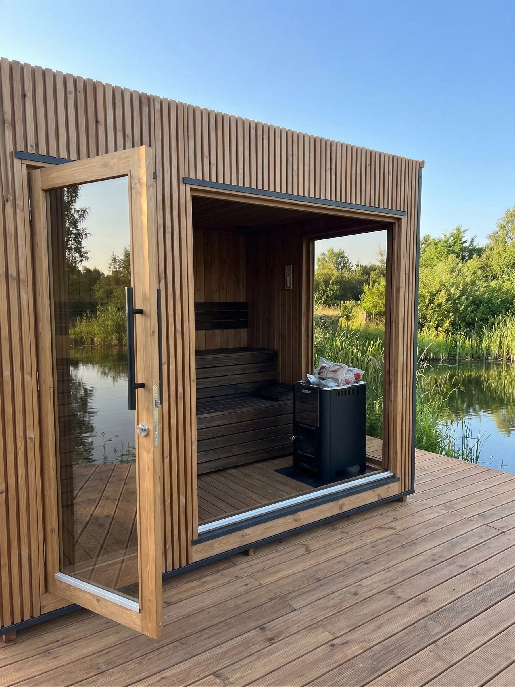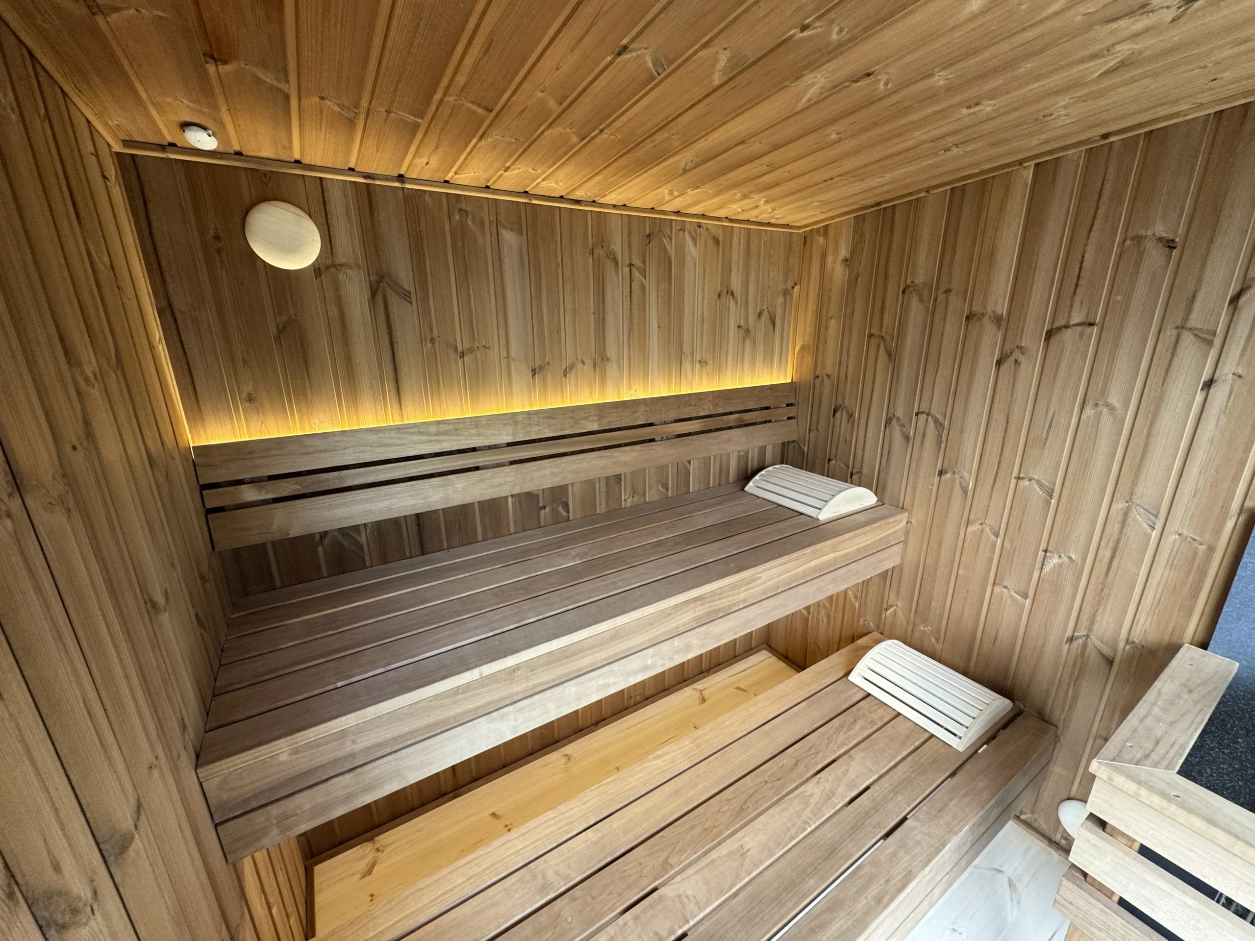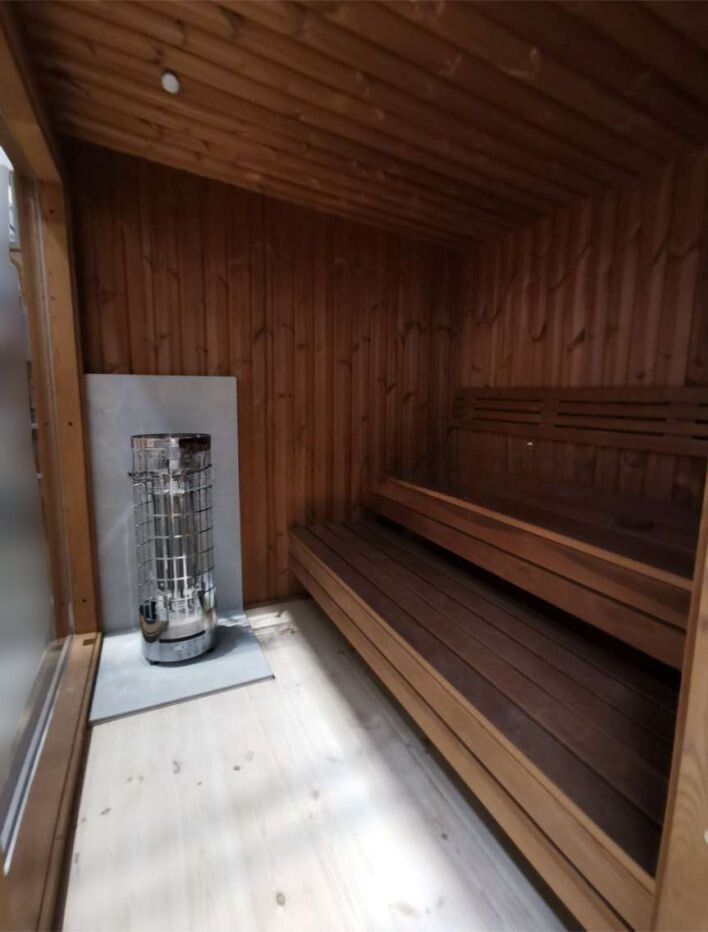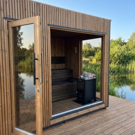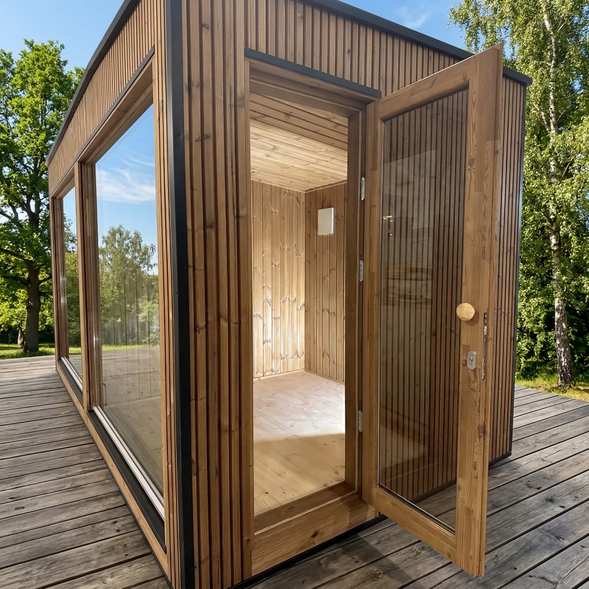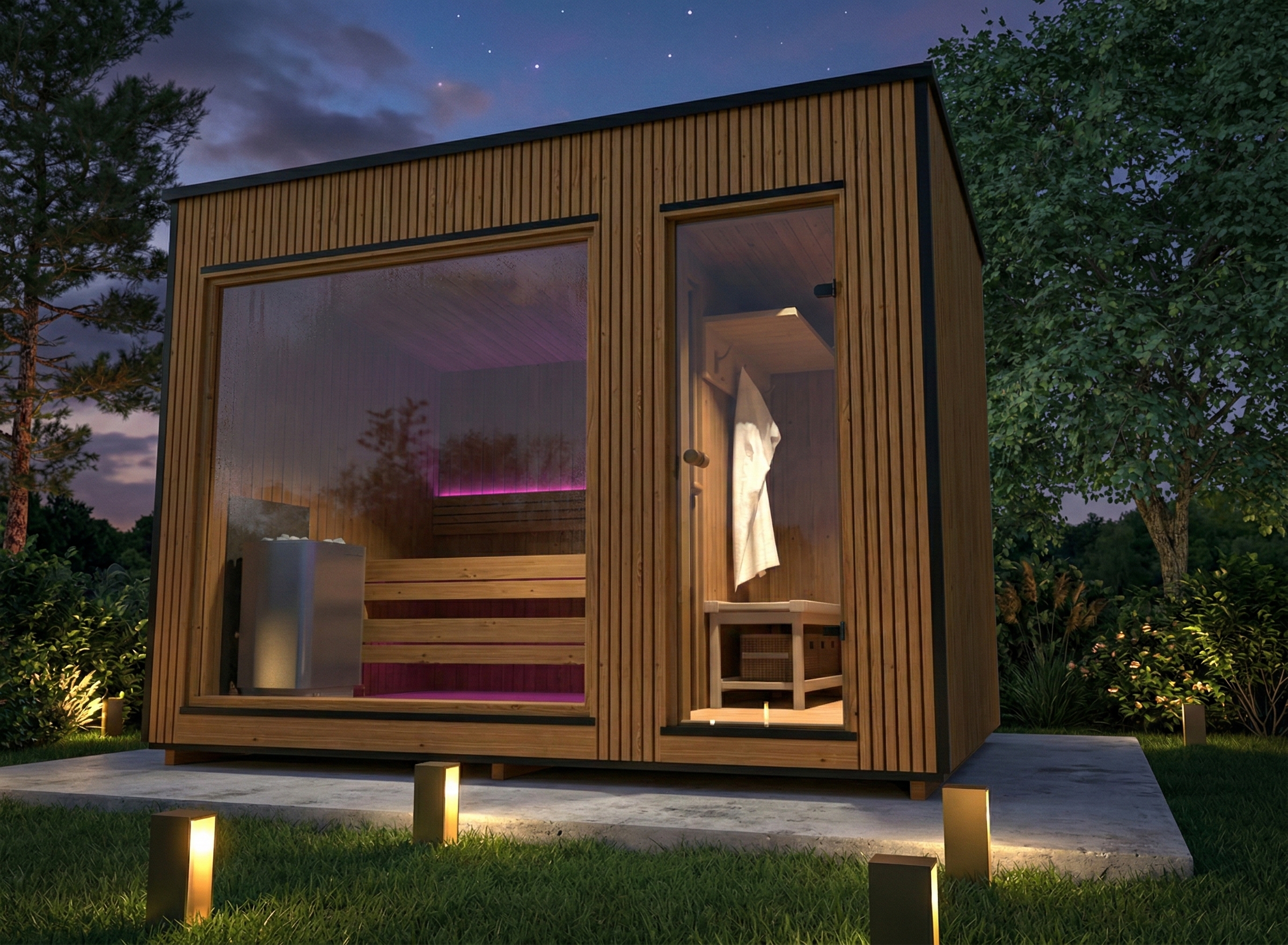 Construit sur une structure robuste isolée de 158 mm au sol et 124 mm en toiture, ce sauna de la gamme "Cabine" est une véritable pièce de vie extérieure. La signature visuelle reste fidèle à la gamme : un habillage en bois Thermowood aux lignes verticales et une toiture en shingle noir pour un look contemporain. Profitez d'une immersion totale grâce au large vitrage panoramique, tout en bénéficiant du confort d'une entrée dédiée. Un choix premium pour ceux qui souhaitent profiter de leur sauna été comme hiver sans quitter le confort intérieur.