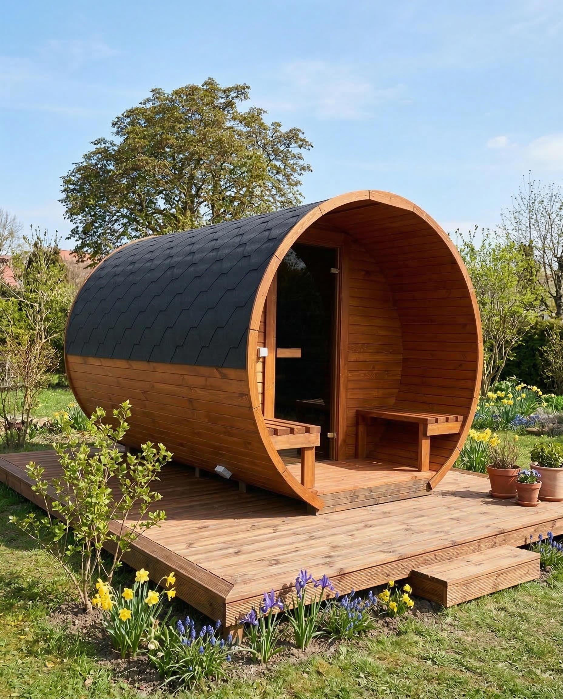 Unique en son genre, le sauna tonneau sol plat offre toute l’originalité des courbes rondes de son cousin entièrement sphérique, avec cette touche supplémentaire de luxe et d’élégance qu’est son sol plat, offrant ainsi plus de confort et de fonctionnalité.